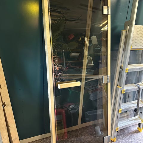 Tonad dörr i gott skick ink karm samt ytter- och innerfoder spikrensade försiktigt. Knappt 70x190 cm är karmens yttermått. Annons kvar=dörren kvar.