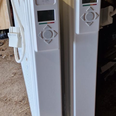 LVI elradiator i vit färg med inbyggd digital termostat och display. Radiatorn ansluts med sladd och är avsedd för väggmontering inomhus. Passar som uppvärmning i bostadsrum, hall eller liknande utrymmen. Utformad som låg, lång panelradiator med slät front och integrerade reglage på sidan. Dom korta 2 st är 130cm i läng och 30 cm brett, den längre 1 st är 160cm lång och 30 cm brett. Konsolerna finns inte med. Säljer bara alla 3 tillsammnas