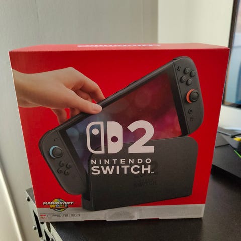 Nintendo Switch spelkonsol. Konsolen kan användas både som bärbar enhet och ansluten till TV via dockningsstation. Joy-Con‑handkontroller kan användas fastsatta på konsolen eller trådlöst. Passar för en eller flera spelare beroende på spel. Stöd för nedladdningsbara spel och fysiska spelkassetter av typen Nintendo Switch-spel.