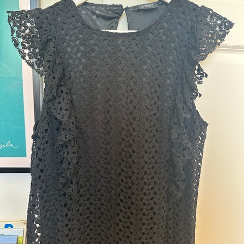 H&M Mama gravidtopp i storlek L. Toppen är rosa och tillverkad i viskos. Överdel med spetsliknande, virkad struktur och korta ärmar. Rak passform med rynkade partier i sidorna som ger plats för växande mage.