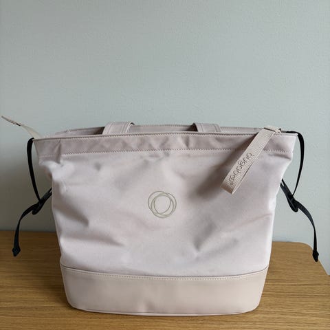 Bugaboo skötväska i svart tyg. Väskan har dubbla bärhandtag upptill samt justerbar axelrem. Utsidan har en större ficka framtill med lock och en ficka med dragkedja på baksidan. Invändigt finns flera fack och mindre fickor för organisering av sköt- och barnprylar. Ljus insida underlättar överblick av innehållet. Passar att hängas på barnvagn eller bäras över axeln.