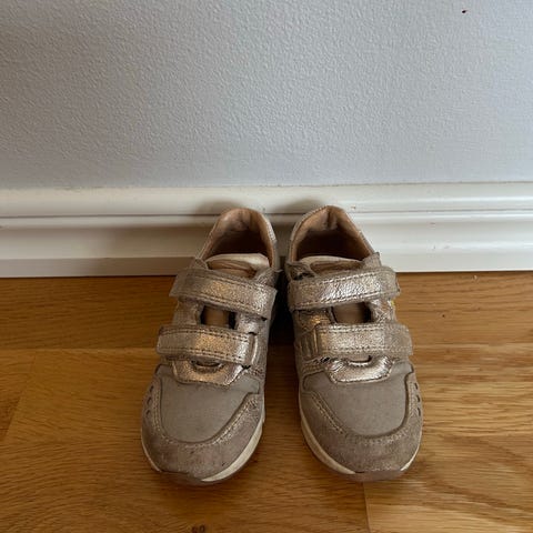 Next Regular Fit ballerinaskor för flicka i storlek 23. Skorna är vita med rem över foten och dekorativ rosett framtill. Ovandelen har små perforerade detaljer längs kanten. Yttersulan är i syntetmaterial med låg klack. Modellen är avsedd som barnskor för vardag eller fest.
