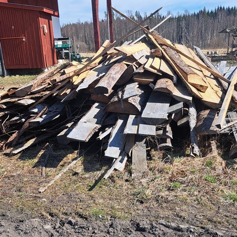 Säljes nedmonterad och uppmärkt. Ritning finns. Takstolar på bild ingår ej, tänkt byggas upp med takåslösning.Uppmontering av stomme kan efter överenskommelse mellan säljare och köpare utföras inom närområdet.