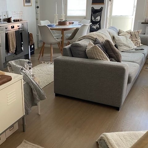 Soffan är i gott skick och hemmet är djur och rökfritt, klädseln går även att ta av och tvätta.