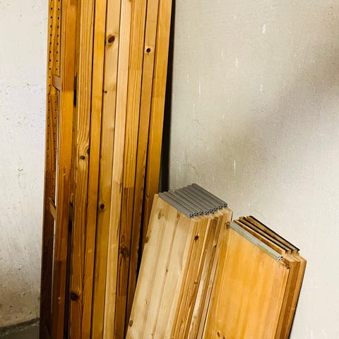 Äkta Stringhylla i design av Nisse Strinning för String AB. Hyllplan i fur med fällbara hakar, vita gavlar. 50 eller 60-tal, fint skick!