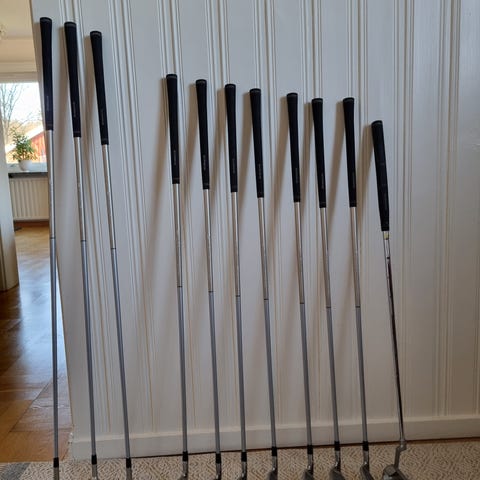 Välvårdat Dam golfset 12sthöger klubbor med vagn och bag .flygbag ingår.så.blir ni vid denna kompletta utrustning. Se bilder.