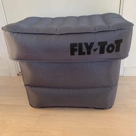 Fly Tot sittkudde för flygresa för barn. Uppblåsbar kudde som placeras framför flygplanssätet för att skapa en plan yta där barnet kan vila eller sova mer bekvämt under resan. Pump ingår.
