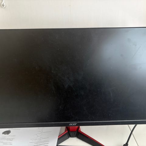 Bara några månader gammal. Köpte av en kompis nånstans i december. " har kvitto som kan visas" 180 hz 1 ms responstid. Kan vridas som på bilden ” 180 grader. Och menu knapp under som kan styra ljud/färger/kontrast osv.