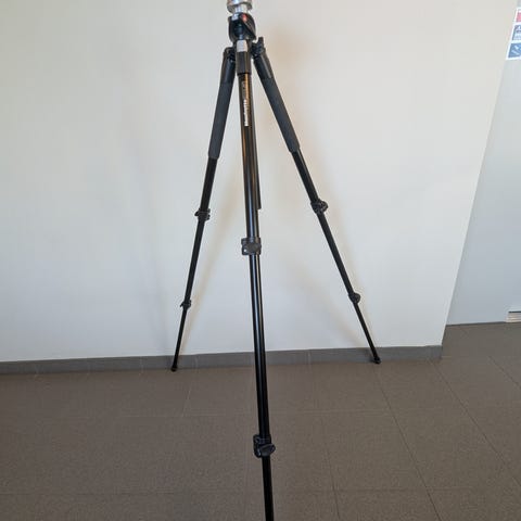 Stativet är i gott begagnat skick och fungerar som det ska. Passar både äldre videokameror och enklare kameror (standardfäste).