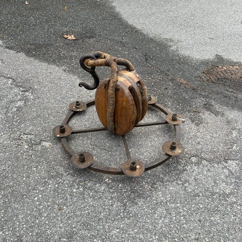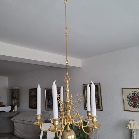 Ljuskrona av pulverlackad metall med 6 st ljushållare för ljus eller värmeljus. En stilren takljuskrona som förgyller din matsalsplats. Med enkla medel blir den extra dekorativ till årets olika middagar, grankvistar till jul, blommor till midsommar eller eukalyptuskvistar som är fina året om.