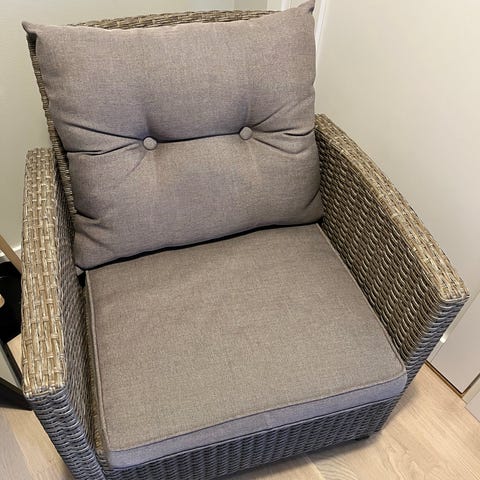 Hej! Säljer denna fina lounge stol som jag haft i ca 2 år. Fick den i present så vet inte riktigt vart den är köpt men skulle gissa starkt på Bauhaus! Hämtas i Nacka Orminge. Kuddarna ingår. Sittdynan går att ta loss fodralet på.