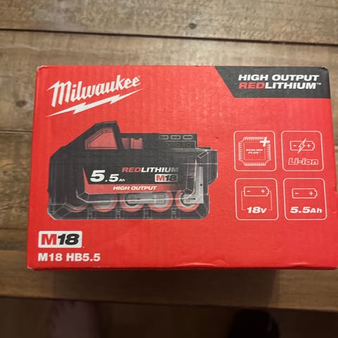 Milwaukee M18 Redlithium batteri med kapacitet på 5,0 Ah som är i fint skick. Batteriet är avsett för verktyg i M18-serien och har ett hölje i svart och rött plastmaterial. Passar som strömkälla till kompatibla batteridrivna elverktyg inom samma system.