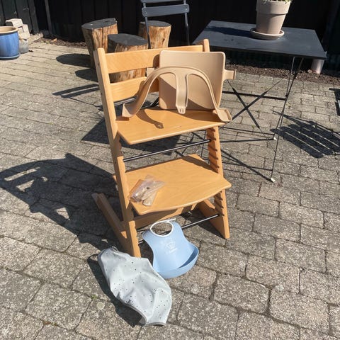Nya modellen - Stokke Tripp Trapp med babyset, sele, dyna, tippskydd