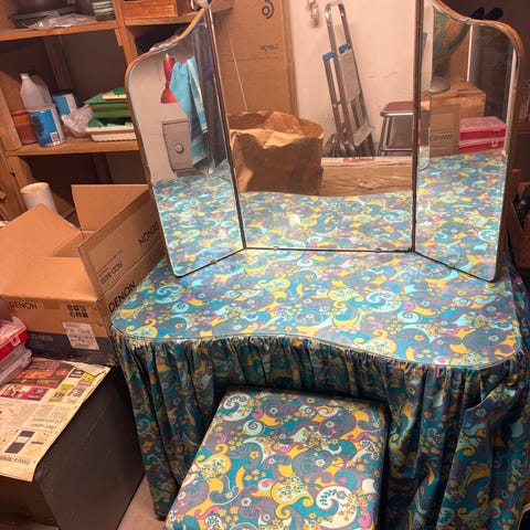 Sminkbord med spegel, vitmålad - retro/vintage