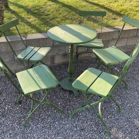Grönt caféet, 2 stolar, 1 bord.
