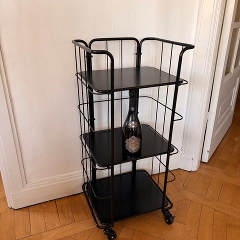 Barvagn i fint skick i metall , endast stått i ett hörn. Kan även användas till annat då den har hjul. Nypris ca 600