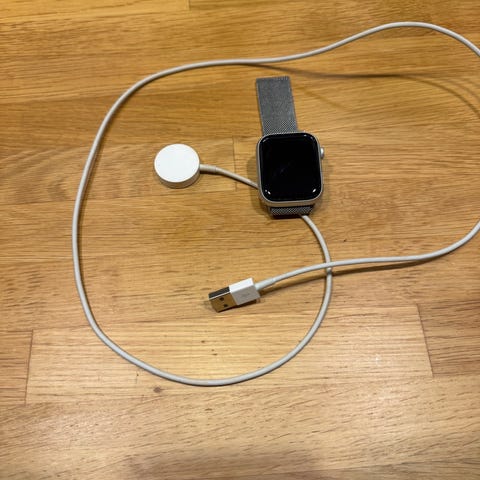Hej! Jag säljer en Apple Watch Series 7 45mm. Den fungerar precis som den ska. Skicket är bra förutom att den har några repor som syns på bilderna. Batterihälsan är 83%. Såklart så skickar jag med laddaren till!