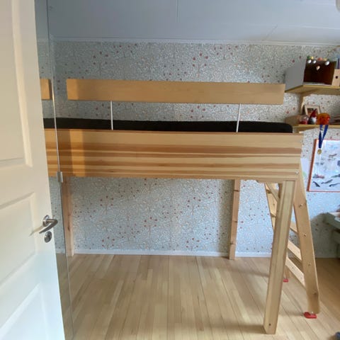Säljes nedmonterad, manual för montering medföljer. Skumgummimadrass ingår.