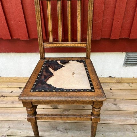 Trästol med hög rygg och låg sits