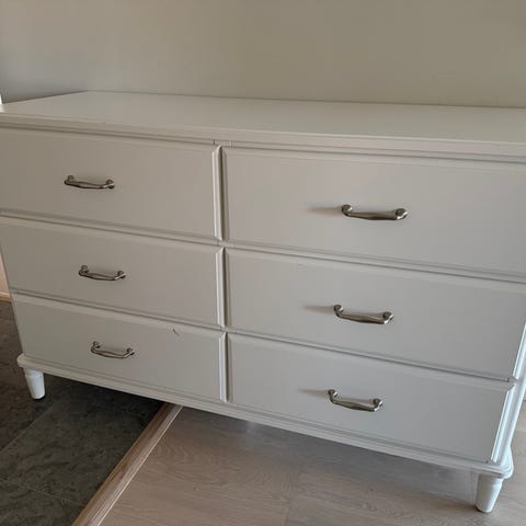 Målad i en beige/grå kulör, finns även lite slitage på ovansidan (se bild).