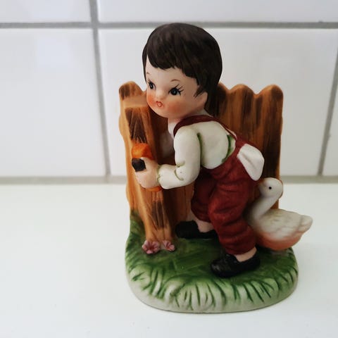 Sparbössa föreställande av fd finansminister Gunnar Sträng. Tillverkad i stengods och designad av Lisa Larsson på Gustavsbergs porslinsfabrik. Likadana figurer sålda på auktioner i år för 400 kr, 312 kr, 703 kr, 368 kr, 650 kr, 400kr, 513 kr och 500 kr.