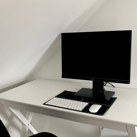Lämplig för kontorsarbete, studier eller annan datoranvändning där en 24-tums skärm och eventuellt dubbelt skärmfäste önskas. Specificerade mått och tekniska detaljer utöver skärmstorlek framgår inte tydligt av underlaget och bör kontrolleras vid behov.