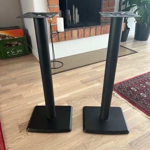 Ett svart tv-stativ som håller för stora tv som till exempel 75 tum. Vet ej märke. Höjd 106 cm. Längd på plattan på marken: 100 cm
