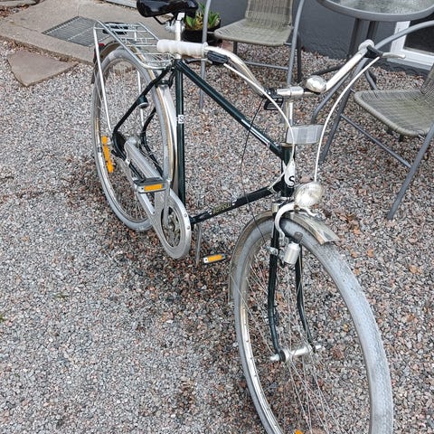 Det går utmärkt att använda cykeln direkt men en varsam renovering skulle kunna återställa cykeln till sin forna glans. Endast avhämtning i Näsviken.