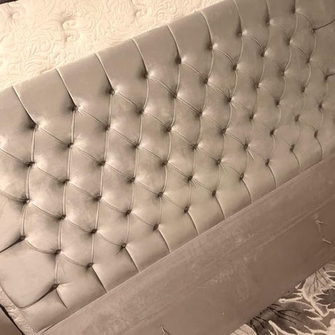 Sängfabriken Gavel 180 cm höjd 130 cm mörkbrun sammet nypris 7900 kr
