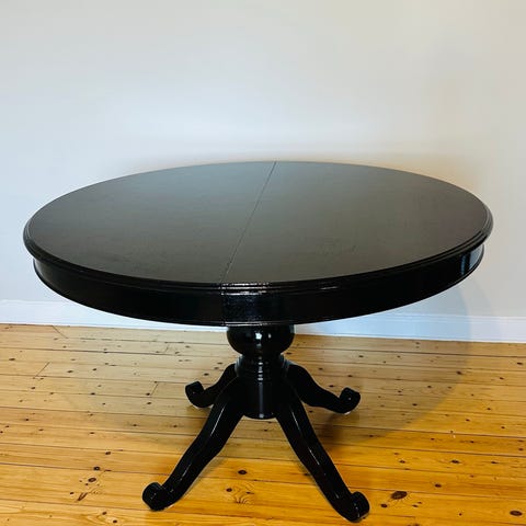 Smart och snyggt svart matbord som snabbt förvandlas från 4 till 6 sittplatser.