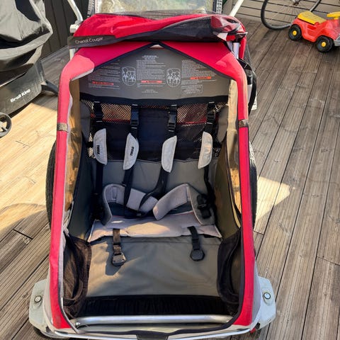- 2 fästen så man kan koppla vagnen till 2 olika cyklar