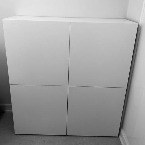 Säljer 2 st vita Bestå väggskåp, monterade men som aldrig varit uppsatta pga ändrade planer. Upphängningsskenor ingår. Nypris 800 kr/skåp Säljer nu båda tillsammans för halva priset =800 kr (400 kr/st)