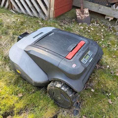 Lcd displayen behövs bytas så vissa delar är släckta. Funkar felfritt. Ny servad hösten 24, användes ej förr sommaren då vi flyttat. Klipper 2000 kvm utan problem. Laddstation ingår. Dock ingen kant kabel.