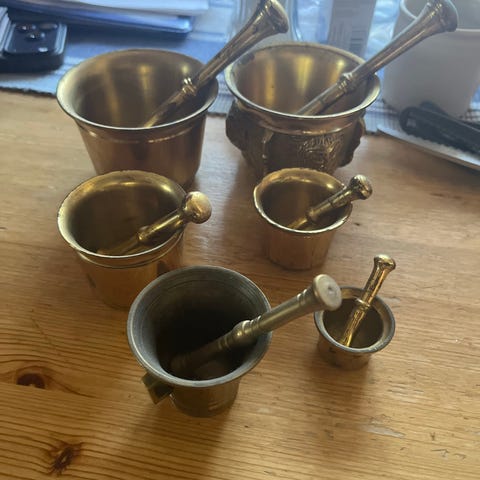 Säljer en vacker och tung mortel i mässing med tillhörande stöt.