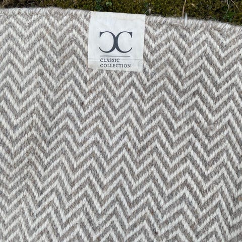 100% ull i en ljusbrun färg med fransar