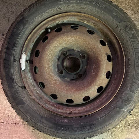 Sommardäck på plåtfälg, 195/65/15, fyra bultar, har suttit på en Peugeot 307 årsmodell 2004 ca.