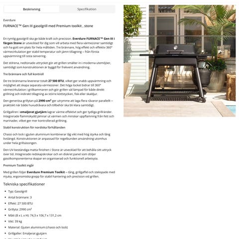 Stor gasolgrill med 6 brännare, samt extra sidobrännare.