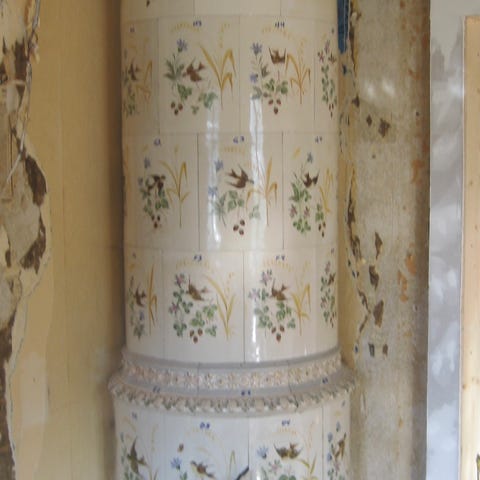 En väldigt fin kolonn kakelugn till salu, säljes nedmonterad och uppmärkt.