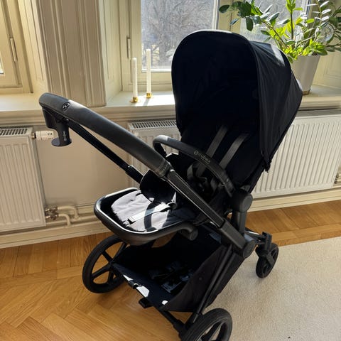 Medföljer även en särskild reseförvaringsväska, där vagnen (med sittdel) enkelt kan fällas ihop och packas ner – perfekt för resor. Adapter för bilbarnstol ingår också.