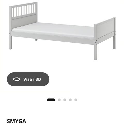 IKEA HEMNES sängram i vitt, 90*200 cm. Klassisk sängram med hög gavel och fotgavel i trä. Passar standardmadrass för enkel säng. Mindre märken och skav finns på ytan enligt bild, därav det kraftigt rabatterade priset i jämförelse med nypris.