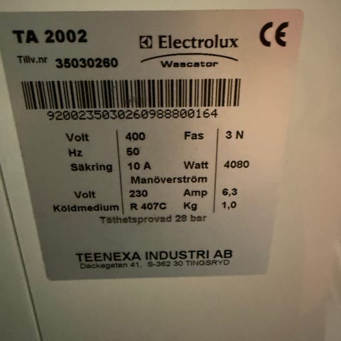 Wasco 1000 avfuktare i vit plast. Avfuktaren drivs med 230 V, 50 Hz och är avsedd för enfasanslutning. Enheten har reglerbar inställning via vred på ovansidan och en vattenbehållare framtill. Passar för inomhusbruk där luftfuktigheten behöver sänkas, till exempel i källare, tvättstuga eller förråd.