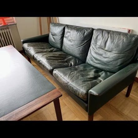 Ikea Landskrona 3-sits soffa i svart läder. Soffan har sits och rygg med rutquiltad stoppning och raka armstöd. Ben i trä. Passar som vardagsrumssoffa eller i TV-rum och allrum.