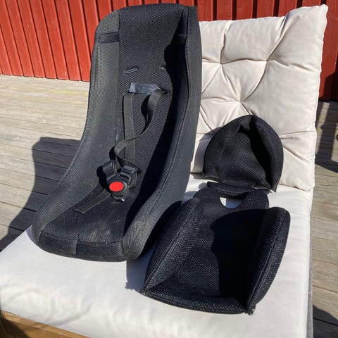 Barnstol/säte till cargobike, från 18 mån, fint skick/inget att anmärka på mer än att den kan torkas av lite bara, nypris 499kr