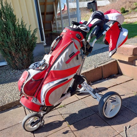 Ger upp min golfkarriär trots nyinvestering i klubbor mm pga tid och ryggproblem. Har spelat 9 hål på detta set, köptes helt nya i Härnösands proshop hösten 24 (inom parentes priset jag betalade). Setet består av: