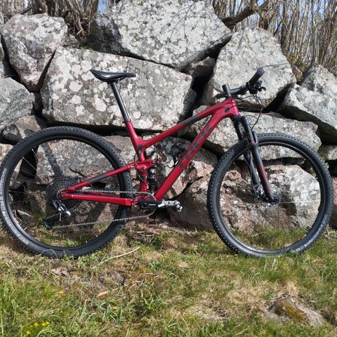 Heldämpad kolfiberhoj i storlek 18.5 (M) och 29" hjul. SRAM 12-speed växlar och SRAM bromsar.