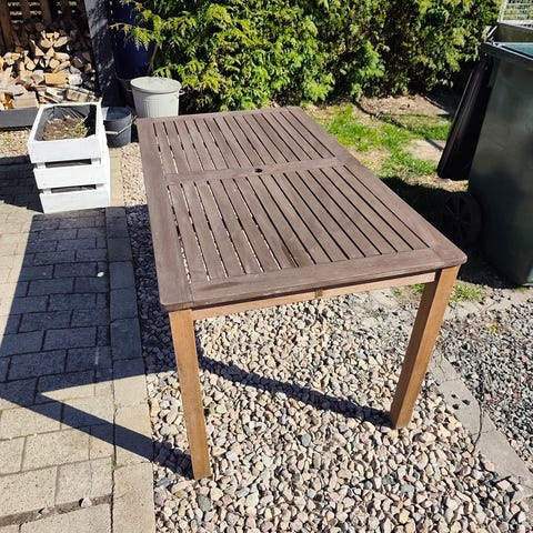 Ett tåligt bord från IKEA falster. Stabilt. 100x160 cm. Brun skiva i låtsasträ. Aintwood. Har sina skavanker men mycket mer att ge.