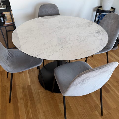Runt bord med 6st stolar.