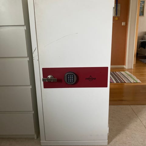 Skåpet har en frontlucka med låscylinder och gångjärn på sidan. Invändigt finns ett öppet utrymme utan hyllor, lämpligt för förvaring av exempelvis dokument, kontanter eller andra värdesaker.