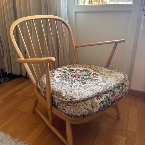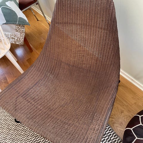 Vintagefåtölj köpt när jag bodde i NYC på en auktionssida. Otroligt unik. Det är en variant av George Nelsons kända Coconut Chair.