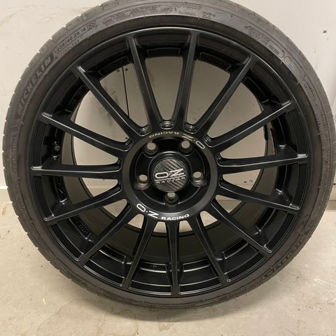 Bak är 9,5x19 ET42 74,1 och fram är 8,5x19 ET38 74,1. Säljes med Michelin pilot sport däck. Bra mönster i bak och helt okej i fram.